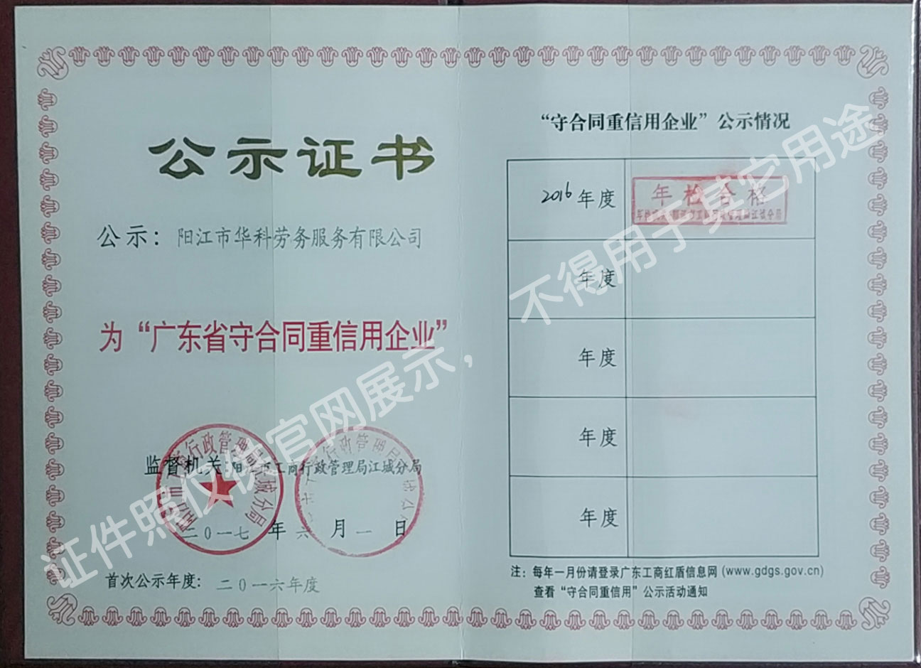 陽(yáng)江市華科勞務(wù)服務(wù)有限公司是專(zhuān)業(yè)從事勞務(wù)外包、人事代理、勞務(wù)租賃、人力派遣及管理的綜合性服務(wù)機(jī)構(gòu),是首批獲得廣東省人力資源廳、陽(yáng)江市勞動(dòng)和社會(huì)保障局頒發(fā)人力資源許可證的合法單位。“誠(chéng)信務(wù)實(shí)、專(zhuān)業(yè)熱情、滿(mǎn)意第一、服務(wù)社群”的經(jīng)營(yíng)理念,在勞務(wù)派遣業(yè)務(wù)的基礎(chǔ)上,更致力于合同制工人(臨時(shí)工、實(shí)習(xí)生、假期工)方向發(fā)展,為用工企業(yè)及時(shí)輸送合格的各類(lèi)人才,合理調(diào)配人力資源的有序流動(dòng),幫助求職者尋求更加滿(mǎn)意的就業(yè)渠道和崗位,切實(shí)維護(hù)求職者的合法權(quán)益。
